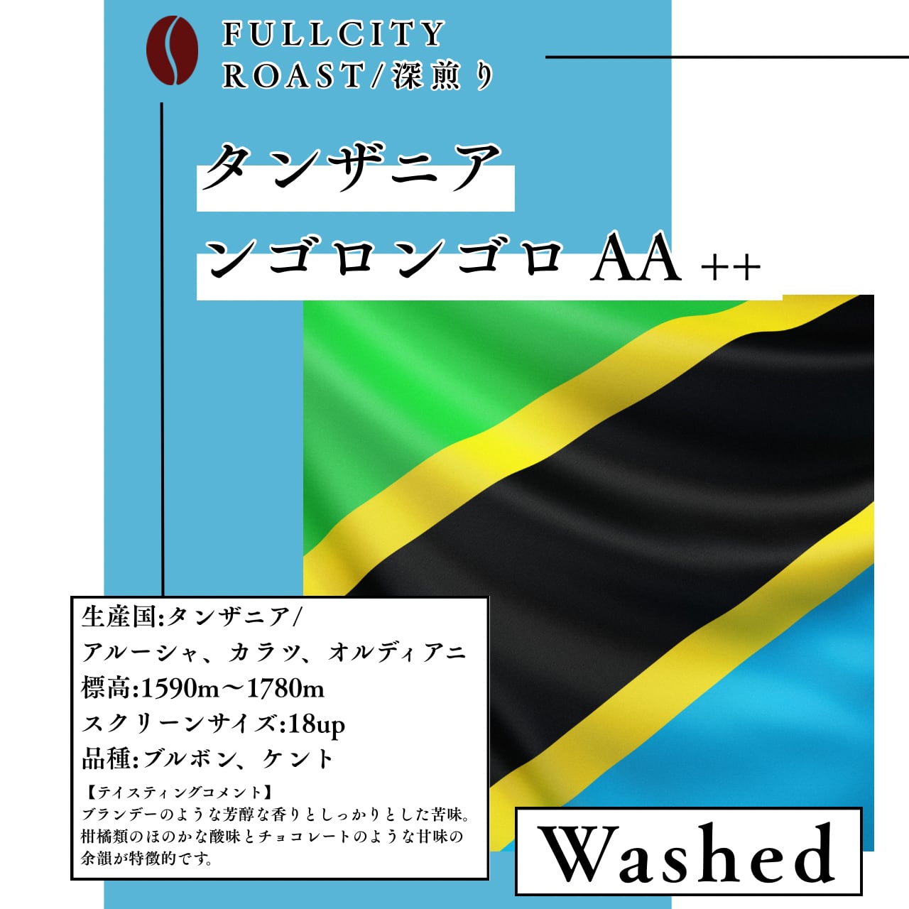 タンザニア ンゴロンゴロ AA ++ ウォッシュド フルシティロースト(深煎り) 60g/120g